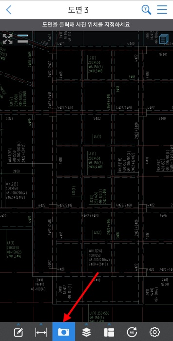 확인해야 하는 도면을 열어 화면 하단에 있는 사진 추가 기능을 선택해 주세요.