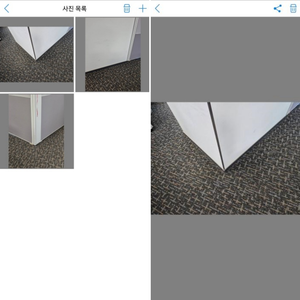 카메라 아이콘을 누르면 사진 목록이 나오고 사진을 자세히 확인할 수 있습니다.