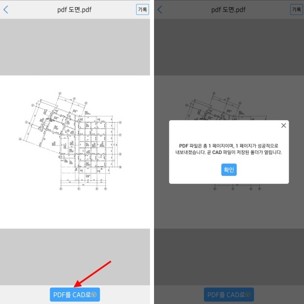 그리고 화면 하단에 있는 ‘PDF를 CAD로’ 버튼을 클릭하세요.