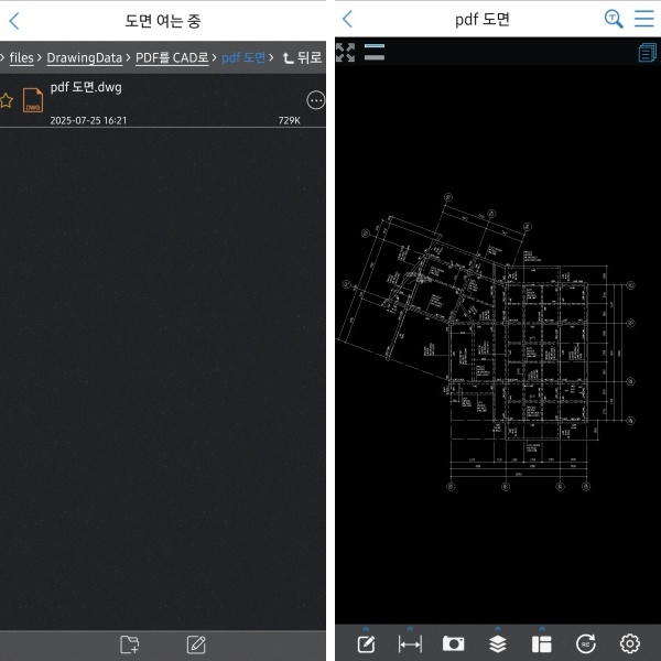 이제 PDF 파일이 DWG 캐드 파일로 변환되었습니다.