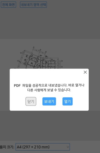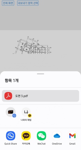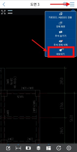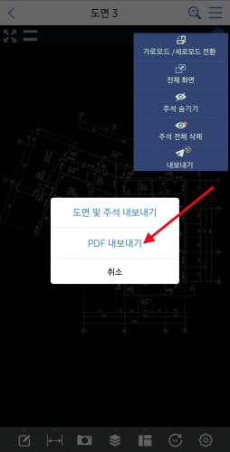 PDF로 변환할 도면 파일을 열고, 오른쪽 상단의 메뉴를 클릭하세요.