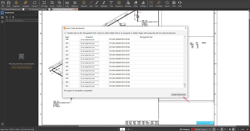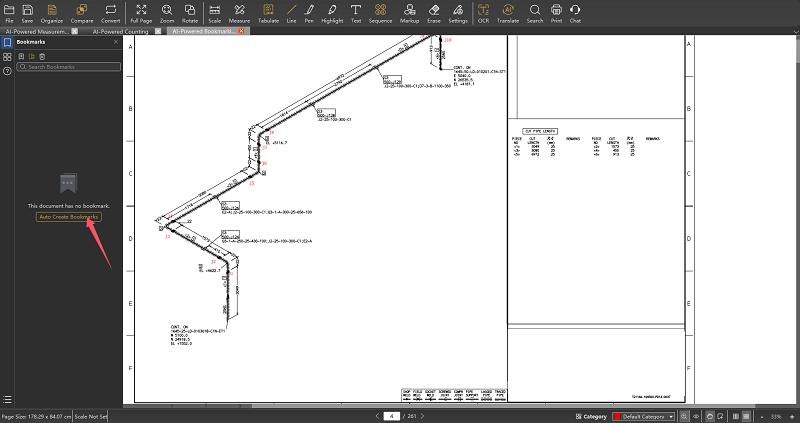 AI-Powered Bookmarking! Transform chaotic multi-page PDFs in seconds. Our AI intelligently analyzes your drawings and generates a clear, navigable table of contents automatically. Find ANY sheet instantly.