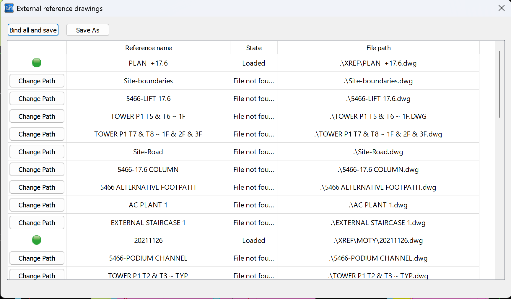 5. A list of external reference drawings will appear.