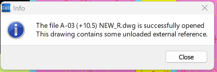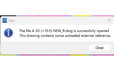 2. Close the pop-up window that states “The drawing contains some unloaded external references.”