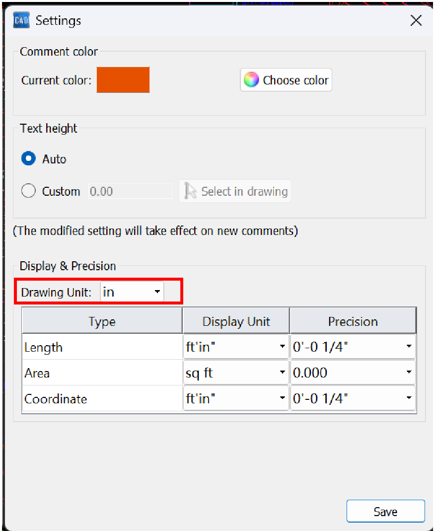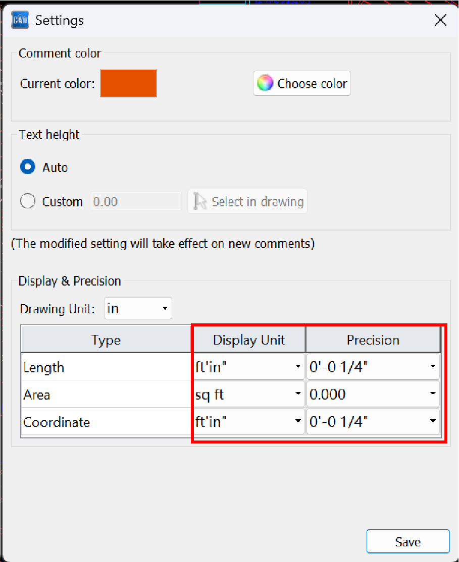 Setting Imperial Units and precision in CAD Reader