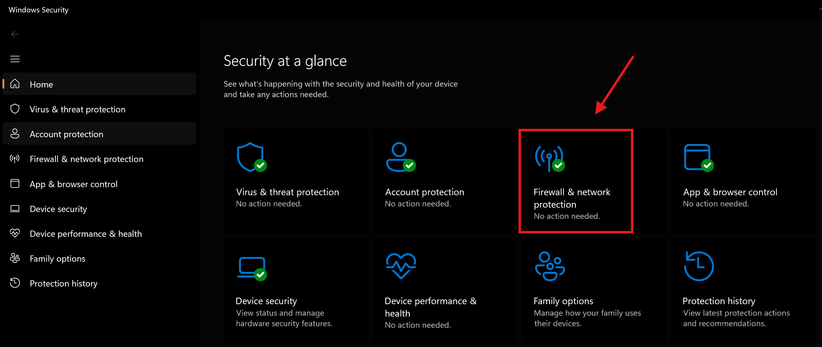2. Go to Firewall & Network Protection