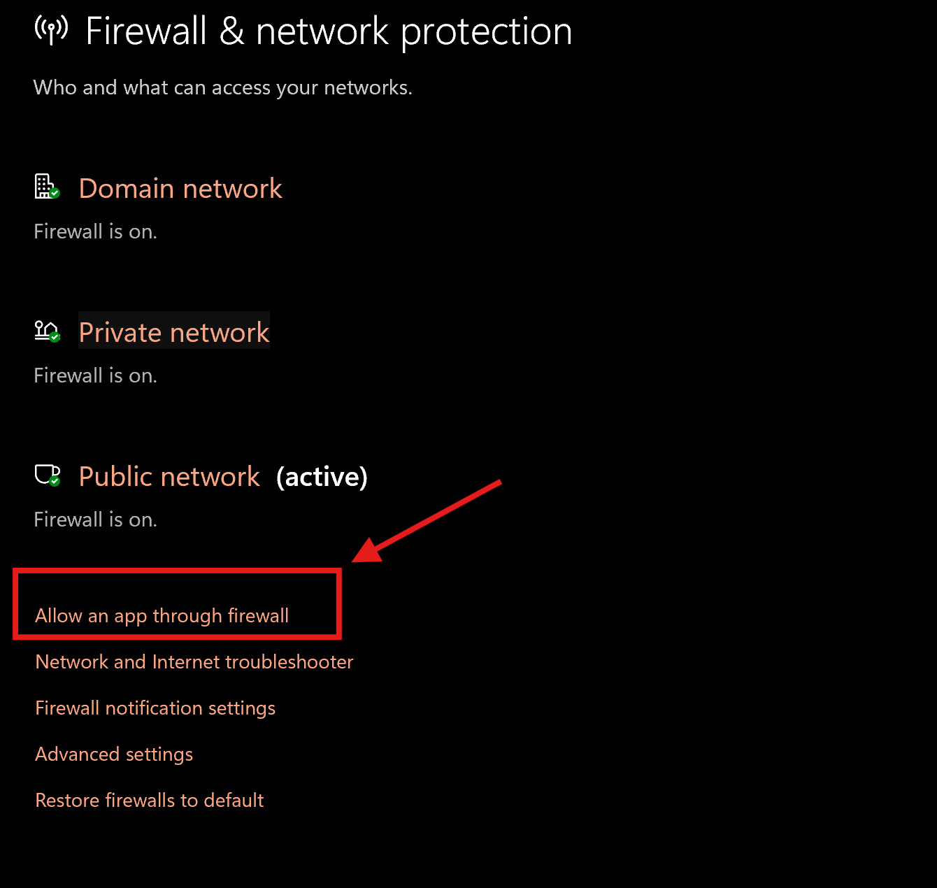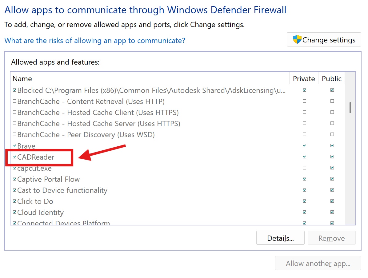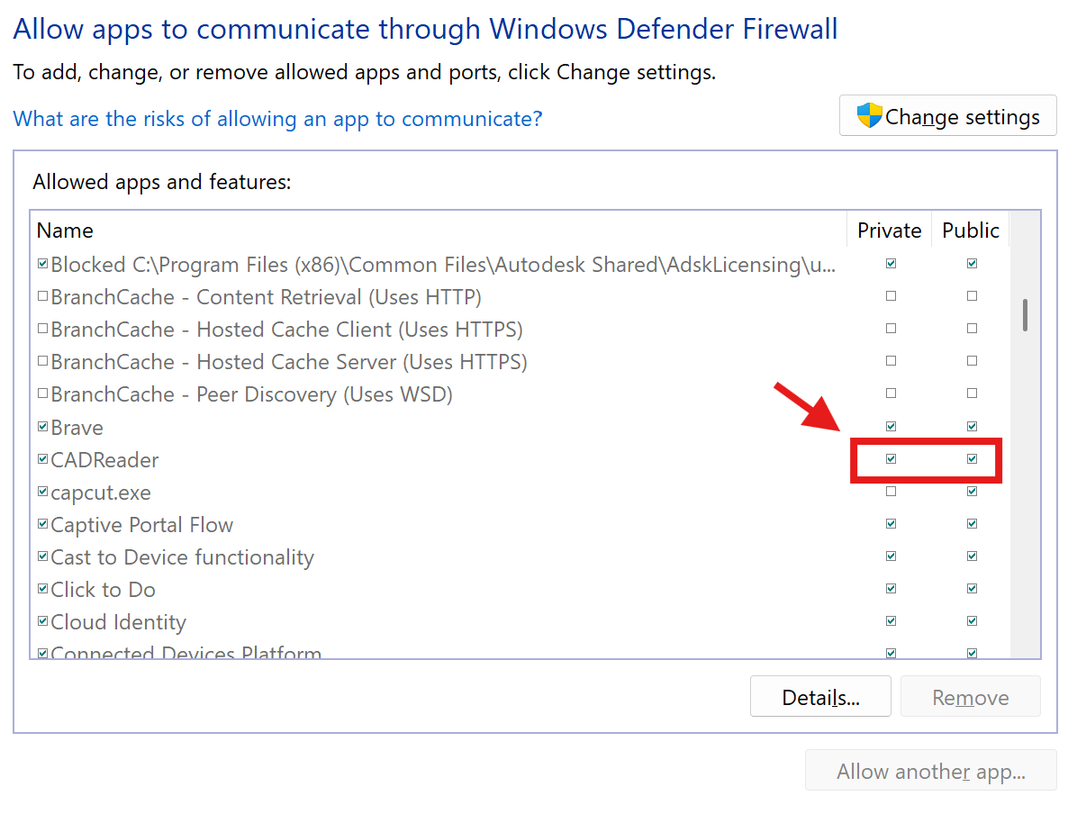Check the boxes for Private and/or Public networks depending on where you want the app to connect.